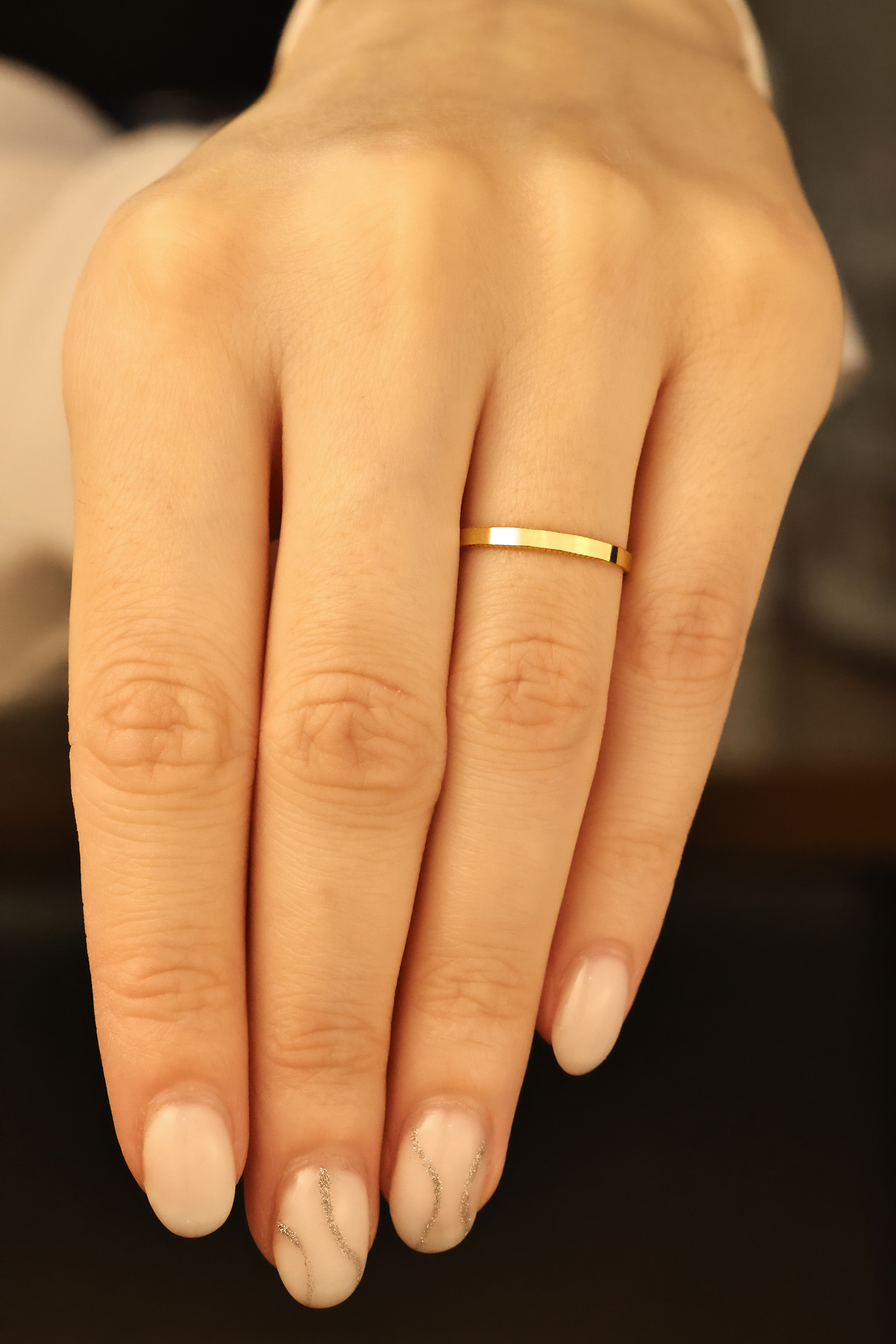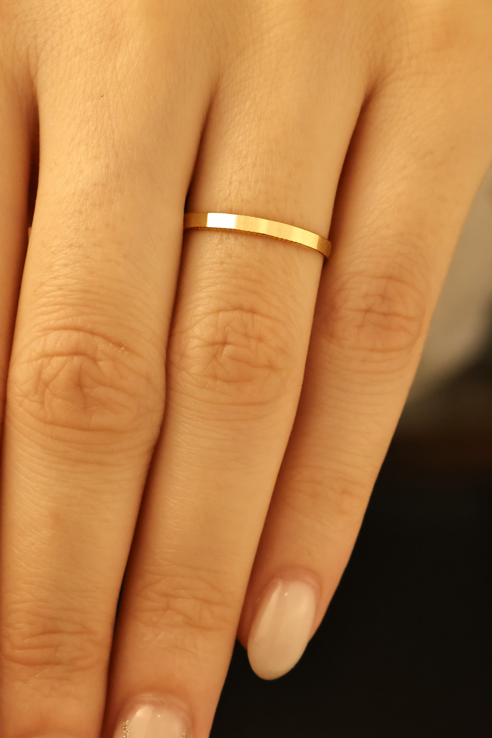 Yüzük koleksiyonumuza ait olan 8 ayar altından ajda yüzüğün standart bir ölçüsünün ağırlığı yaklaşık olarak 0,65 gramdır.