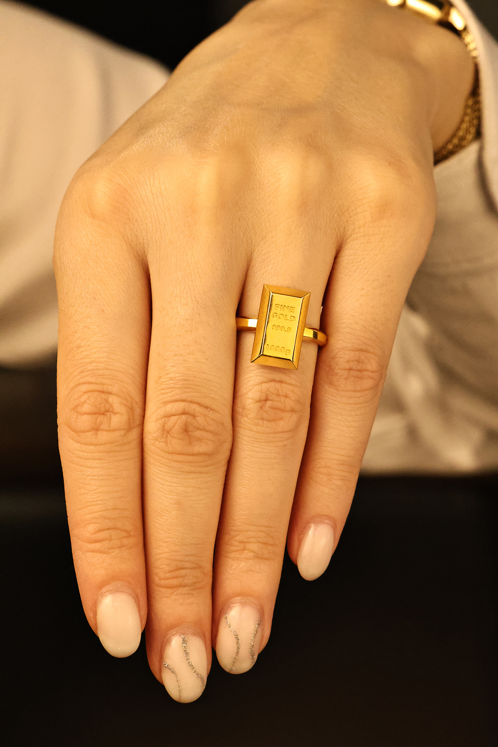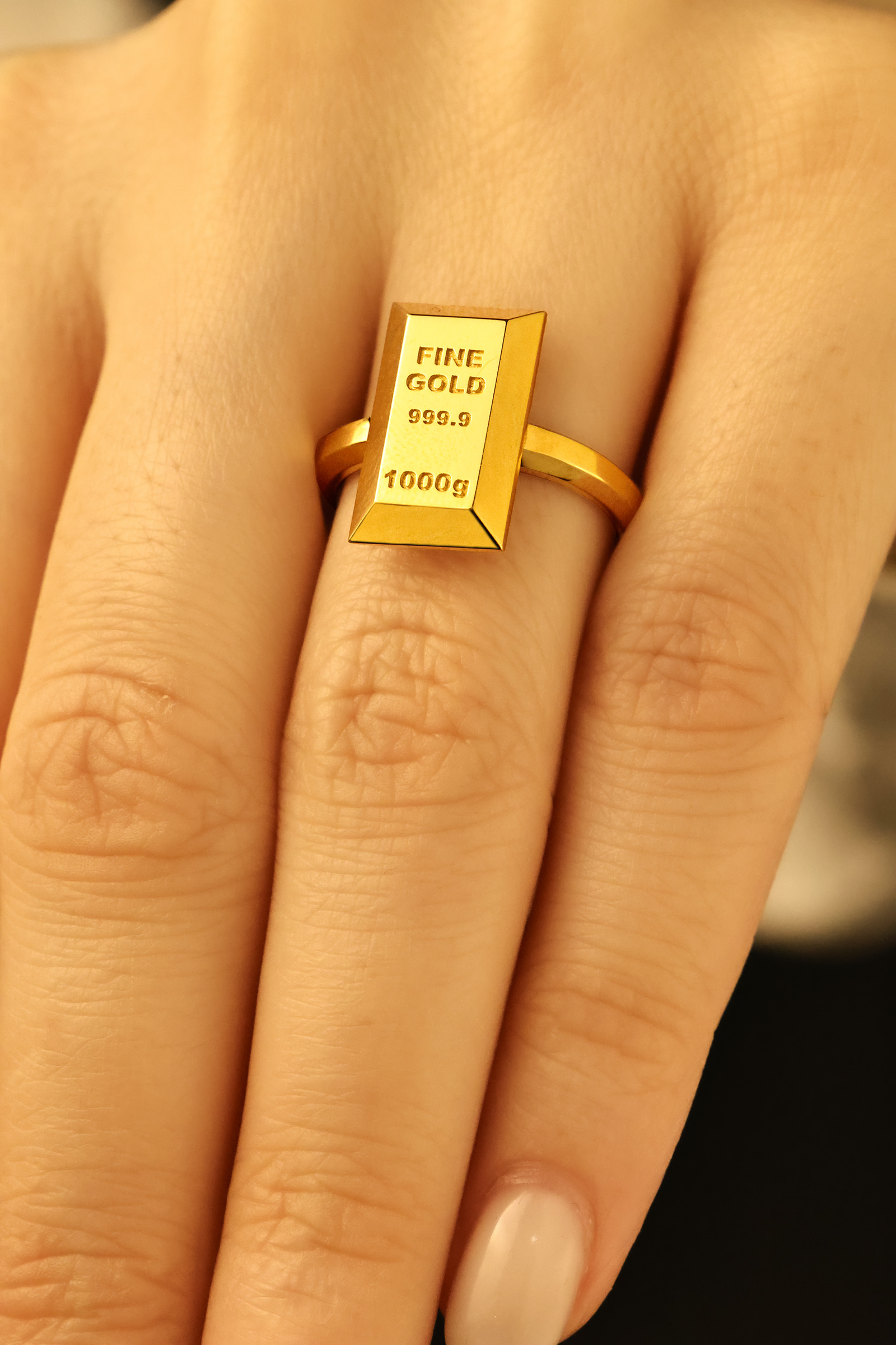Yüzük koleksiyonumuza ait olan 8 ayar altından üretilen ajda yüzüğün standart bir ölçüsünün ağırlığı yaklaşık olarak 1,55 gramdır.