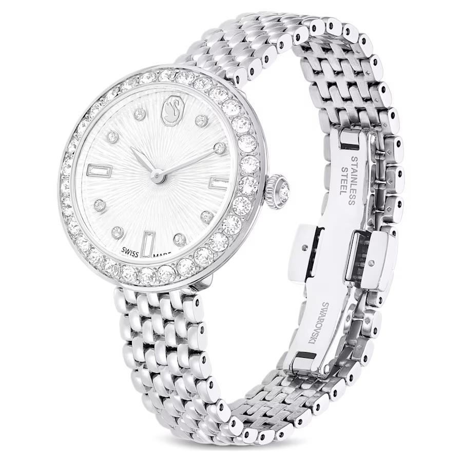 Bu Certa saat, her türlü kıyafeti öne çıkaracak şekilde yaratıcı bir şekilde tasarlanmıştır. 30 mm'lik yuvarlak kasa paslanmaz çelikten yapılmıştır ve 30 kristal pavéli bir çerçeve setine sahiptir. Mineral camın altında, saat 12 konumunda Swarovski kuğu logosunun yanı sıra yuvarlak ve baget kristallerden oluşturulan indekslerin yer aldığı büyüleyici guilloché kadran ortaya çıkıyor. Saatin tepe kısmında da tek kristal seti yer alıyor. Bileğe şıklık katmak için saat, paslanmaz çelikten yedi bağlantılı bir bileklikle sunuluyor. Bu İsviçre yapımı saat, 50 metreye kadar suya dayanıklıdır ve zarif bir incelik ile günlük olaylara zamanında yetişmenizi sağlamak için tasarlanmıştır.