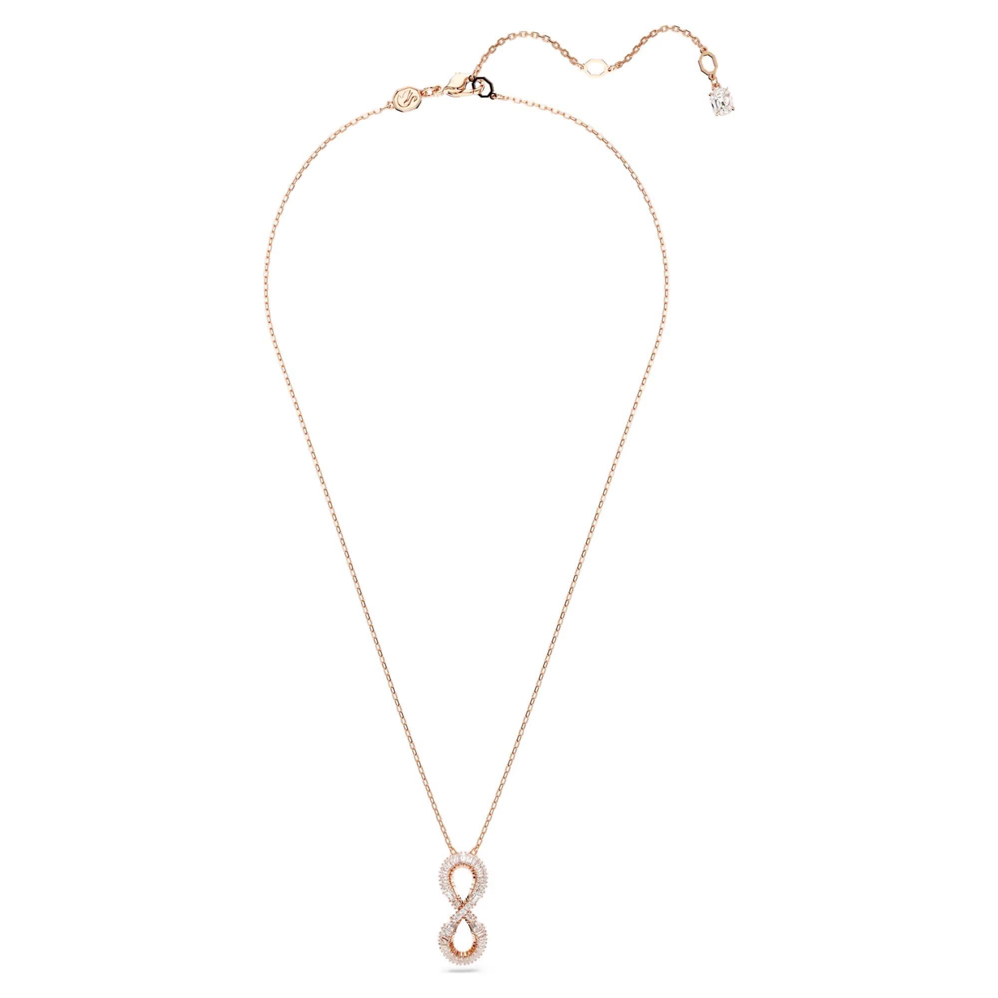 Sonsuzluk sembolü şeklindeki bu göz kamaştırıcı Hyperbola kolye ile zamansız bir tarza kucak açın. Dikey motifi berrak Swarovski Zirkonya ile süslenmiş olan pembe altın rengi kaplama takı, zarif bir zincir ile takılıyor. Ekstra bir lüks dokunuşu için uzatma kısmına ayrıca tek bir Swarovski Zirkonya yerleştirildi. Günlük zarafet için ideal bir parça.